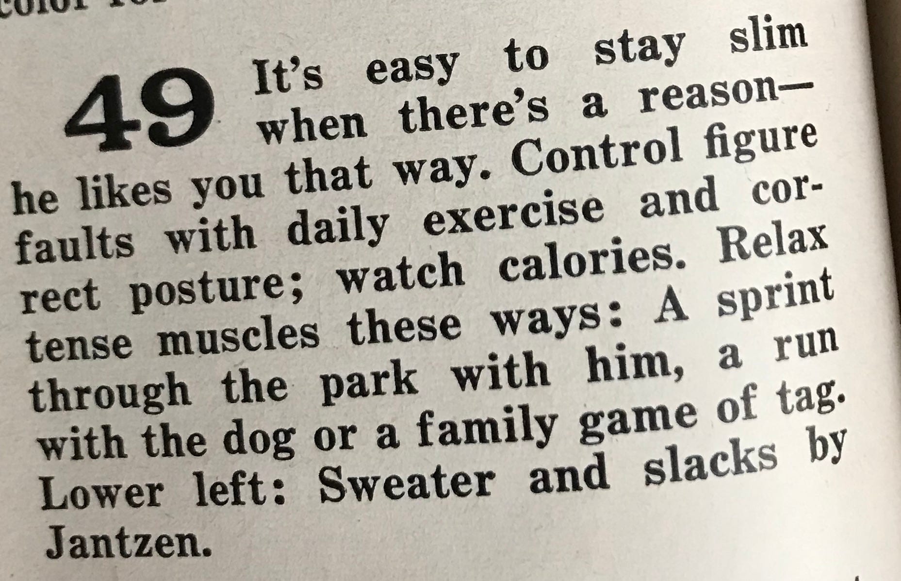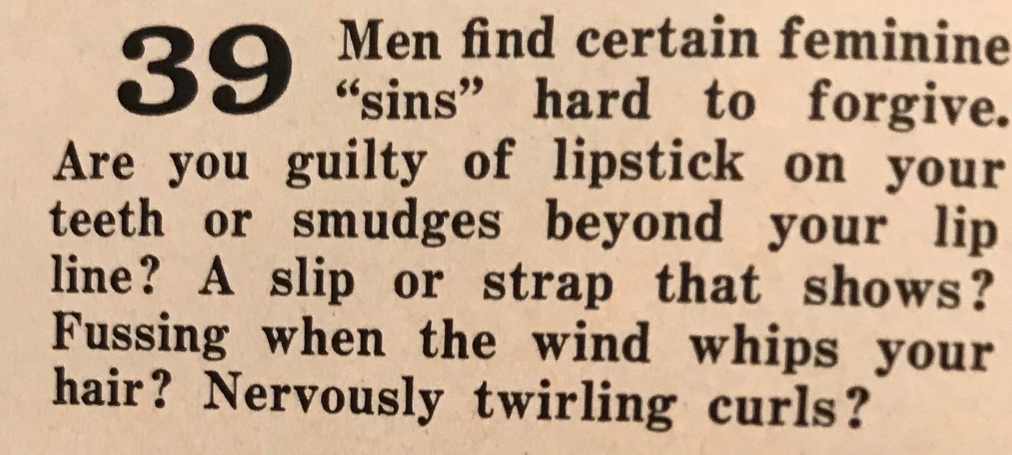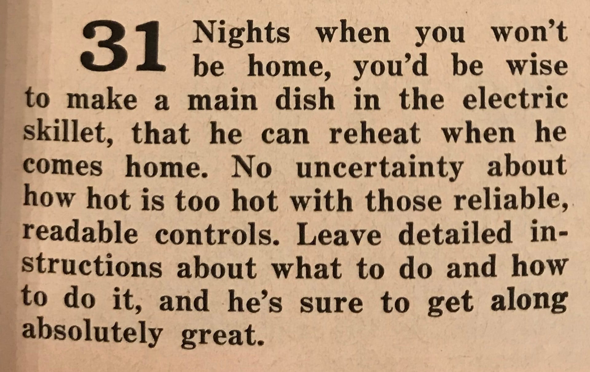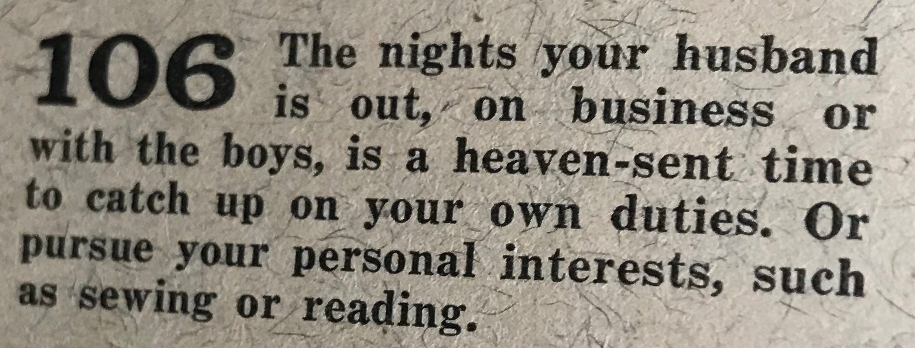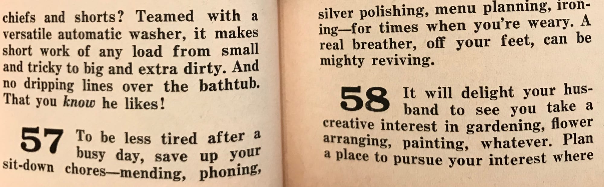 I am super curious to learn some day how this type of advice got written and published in 1965, but I have one clue: