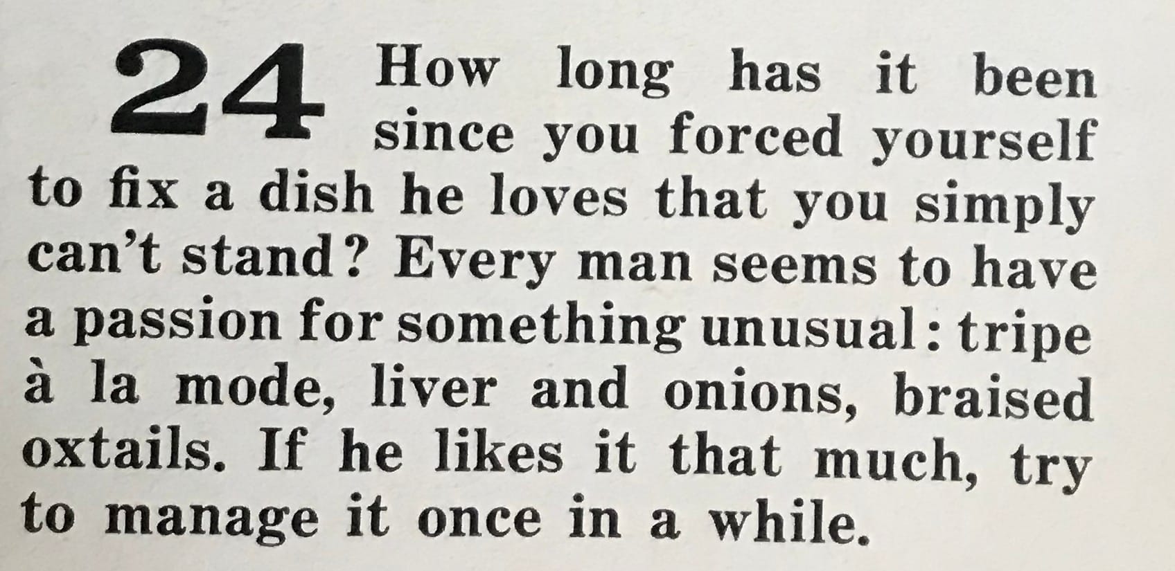 Anyway, below are some tips on how we can all be better wives. I found this magazine in a thrift store in Leelanau County, Michigan this summer and it was some of the best money I’ve spent this year.