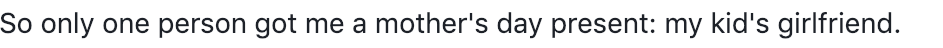 This was followed by:There is a Mothers Day totem pole and you are probably not at the top.