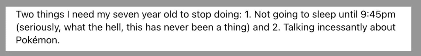 - No hiding eating/food. My older son once very conspicuously hid the fact that he was sneaking candy and eating it in his room. I told him that hiding food/eating was, essentially, bad vibes for me personally because I used to feel bad about what I wanted to eat and hide it from my parents. I said that if he wants a treat let’s talk about it/do it out in the open, please, and I won’t make him feel bad for wanting it.