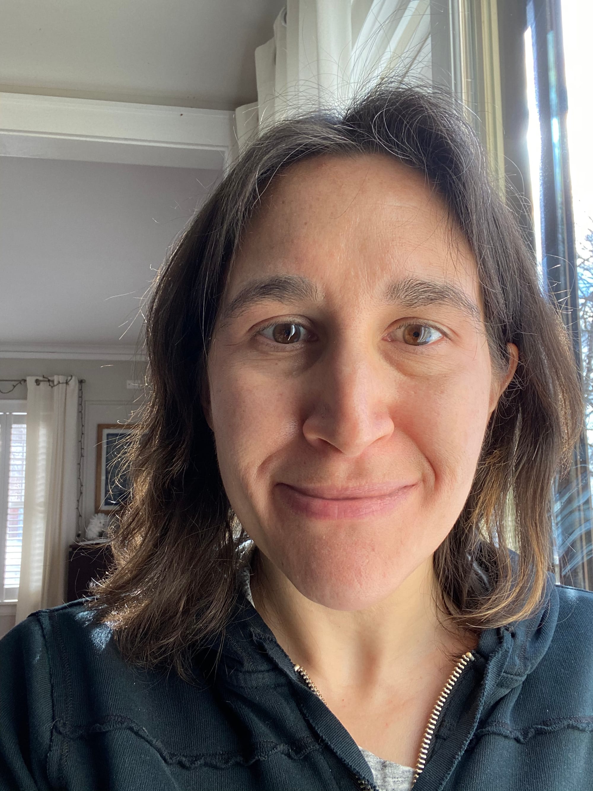 But how do you look and how do you feel about it? I used to look in the mirror and lift up my cheeks a little to see what my face would look like without those lines. Now I have that look without the lifting. It’s not that I look ‘younger,’ I feel like I look more pleasant and less frowny and haggard and so I don’t cringe from my own reflection. I took the crappy filter off my Zoom. The first week my smile seemed a scoche narrower but then it either went away or I got used to it.