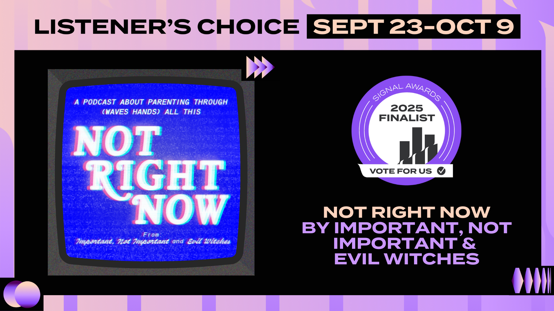 Thanks to those of you who have given a listen to the podcast project I’ve been doing with called “Not Right Now” (we are currently recording new eps).