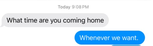 A text my friend got from her 12 year old while he was being babysat by a nice young lady and his mom was at a fun grownup party: