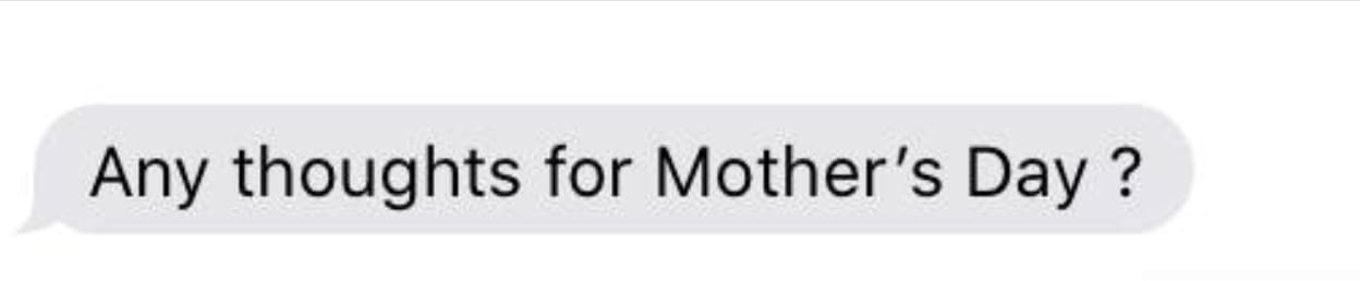 “My husband’s mom just wanted drawings or homemade cards from the kids for Mother’s Day. He kept forgetting to send them until the Friday before and he had to spend $50 to get it to her by Saturday. 🙃”