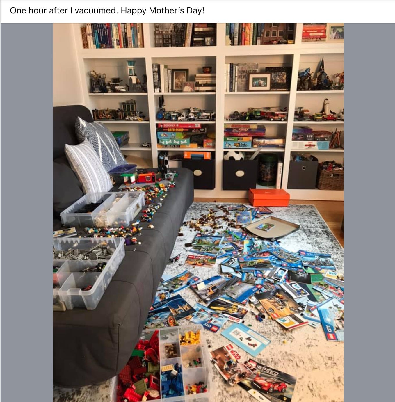 “Happy Mother’s Day to my husband! I hope you enjoyed your lie-in as I left at 10am and you were still sleeping soundly. The kids made themselves toasted hamburger bun Nutella breakfast sandwiches, and no one thought of me, so I ate biscotti soaked in the coffee I made myself, then made sure the kids had their morning meds, and left to go wander Home Depot in the rain by myself. Another Mother’s Day for the record books begins!”