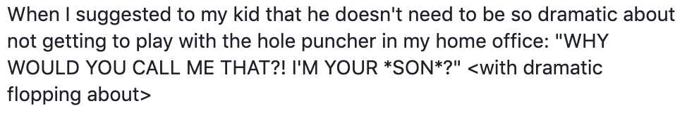 Trying is often performative, to show that despite what your child is currently doing, there is a certain standard of behavior you wish for that you hope reflects your values. We went on a family vacation recently and I nagged my kids at every restaurant interaction (which was 100% of the meals) to say please and thank you and to make eye contact to the point where maybe the waitstaff was a little bit like “Yeah, yeah, I get it, you’re trying, but I have other tables to get to. ” If I didn’t want to perform this I probably could have done my nagging ahead of time, but this way if the kids were rude I could widen my eyes and shake my head at the server to be like “These kids. I tried at least. Also, I was a server once in 2001 for six months, so I get it.” The server would undoubtedly think “What a wonderful mother/human; she must be one of the good ones,” and have a marvelous rest of the shift.