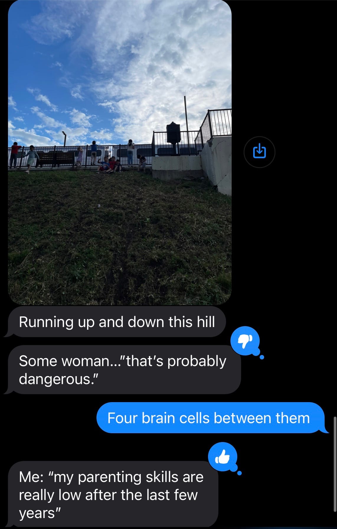 The kids were pretty well behaved at the game but around the 6th inning they got restless so my mom friend and I took them to the kids’ area where they ran around in a typical careless manner that is both very normal and also potentially annoying to other people. I was doing that public parenting thing where I said something like “Guys, slow down” or “Guys, the line starts over there” or “Guys, use hand sanitizer,” and they ran off because god forbid I look like I have any control over my kids, let alone anyone else’s.