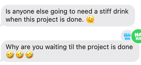 A January missive from the 7th grade moms’ group chat re: the science fair projects, which the kids started n August: