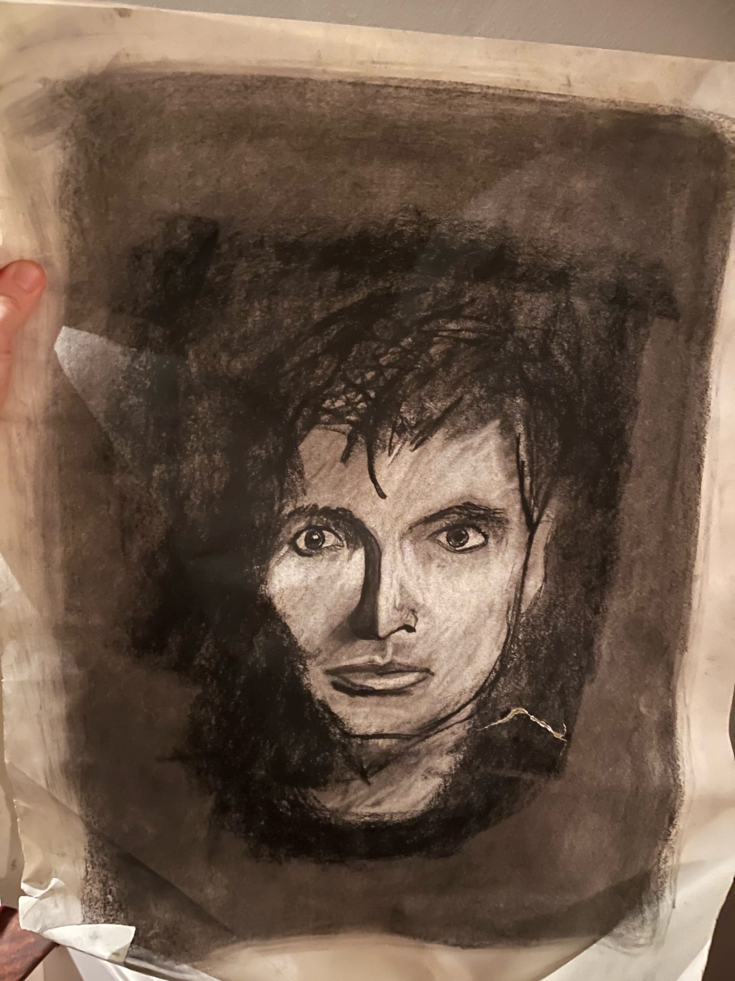 We have a few framed drawings and posters in there she’d set aside, and among them was this charcoal drawing: