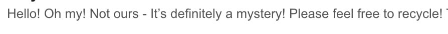 I knew the prior occupants had a teenage son, so figured it was maybe him. The prior owners don’t live far, so I was all ready to bring it to their house. As I wrote this email, I thought about how nice I was that I was willing to bring this lad back to his parents. What a nice souvenir from an earlier era in their lives: