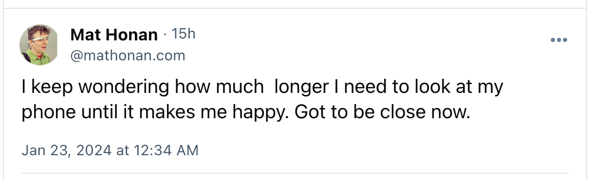 “If it’s not giving you joy, drop it! Your phone should serve you--don’t let the infinite scroll steal your sleep, contentment, time, sense of self. Text friends more than you scroll. You don’t owe the world your thoughts. If something is scary/infuriating/encourages you to spend money, research whether it’s a full account of the facts.”